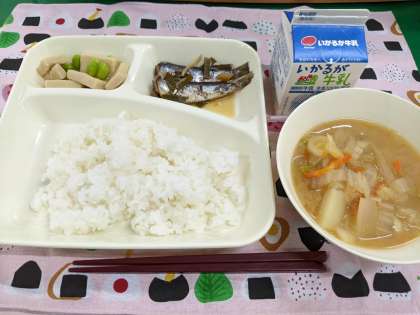 12月10日(金)のこんだては「いわしのしょうが煮、みそ汁、高野どうふの煮もの、ごはん、牛乳」です。