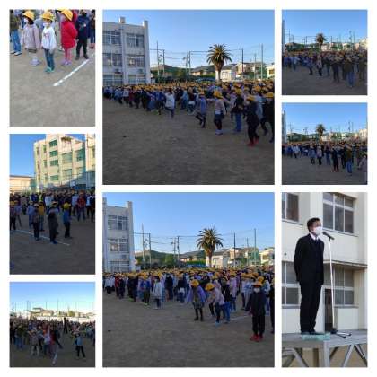 とても寒い朝です。12月13日月曜日、児童朝会の様子です。