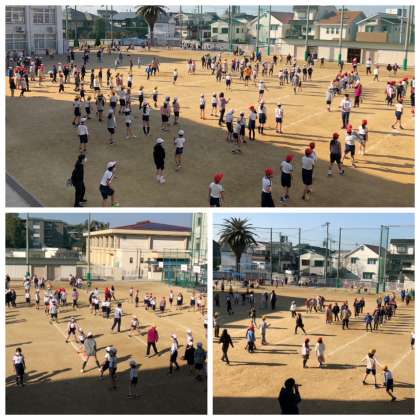 正確にジャンプしている児童とわずかですが手抜きのジャンプをしている児童が・・・