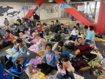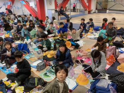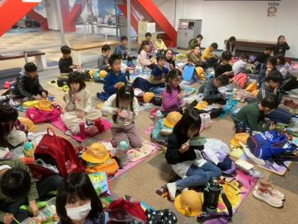 お弁当タイムです!館内のため、給食と同じように静かに食べましたが、たくさん歩きお腹が減ったのか、嬉しそうでした。