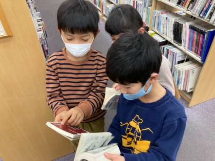 町たんけんの一環で、阿倍野図書館に見学に行きました。大阪市の図書館についてのお話を聞いたり、どんな本があるのか見させてもらいました。たくさんの本に子どもたちは、喜んでいて、検索の仕方や本の場所など詳しく教えて頂きました。