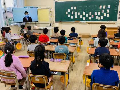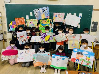 始業式で先生方からのお話を聞いた後、冬休みの絵日記や読書感想画を集めました。