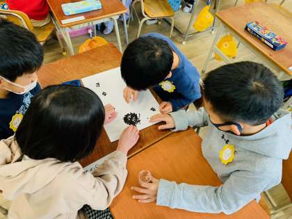 まだ習っていないとても大きな数になりましたが、子ども達は協力して一生懸命に数え、1600個を超える種が集まっていたことが分かりました!