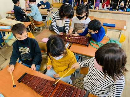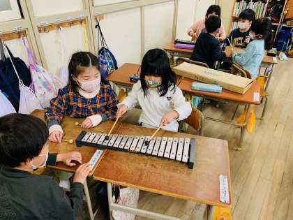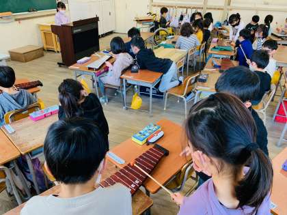 オルガンの伴奏に合わせて、上手に演奏することができました。
