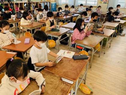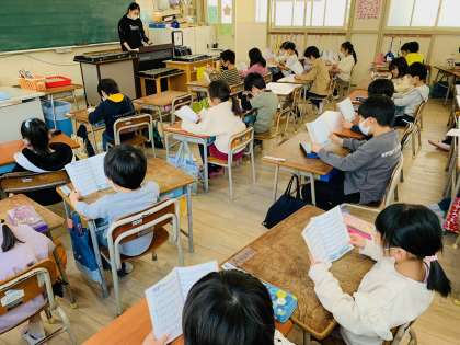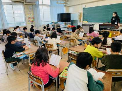 みんなマスクを着けて前を向き、「世界に一つだけの花」の歌の練習です。