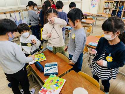 音を長く響かせたり、す早く止めたり、色々な方法で演奏することができました。