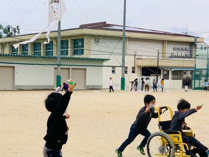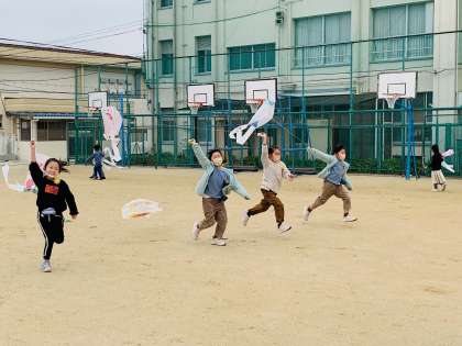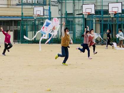 クラスの児童全員が、凧あげを1回は体験することができました!