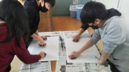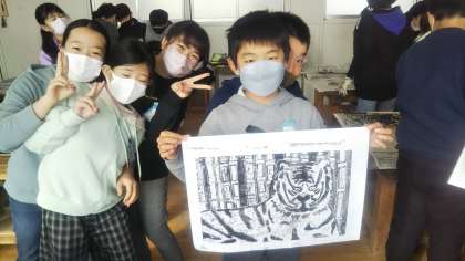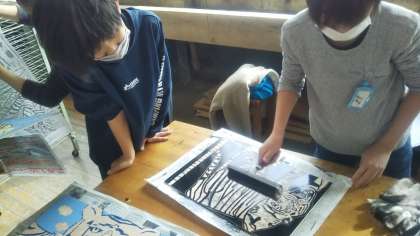 【6年生】版画「寅」刷る