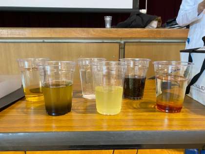 2月25日の2時間目にゲストティーチャーとして薬剤師の方々をお招きし、薬の服用の仕方などについて学びました。薬を服用する時に飲むものによって薬の効果が強まったり弱まったりすることなど、薬の正しい服用の仕方を詳しく教えていただきました。薬をコーラやレモン炭酸水などで飲むと胃の中でどのように変容するのかを実験を通して知ることができました。