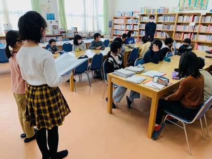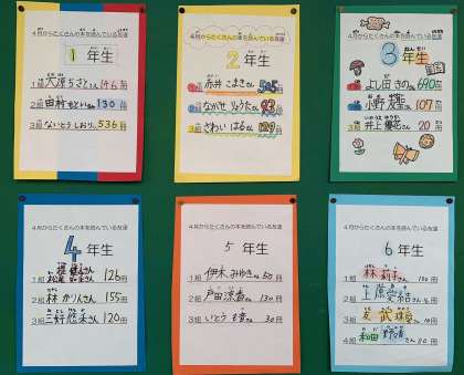 最終日の今日は、読書カードにたくさん読んだ本を記録した児童のランキングや、図書委員の活動をまとめた掲示物を作成しました。