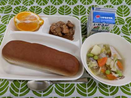 3月2日(水)のこんだては、「鶏肉のみそバターソース、洋風煮、デコポン、黒糖パン、牛乳」です。