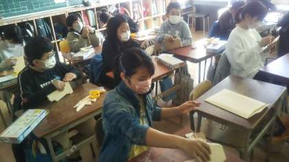 糸ノコ盤で切った面をやすりがけし、つるつるにしています。