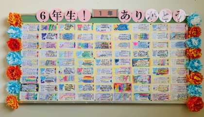 大好きな6年生に向けて、感謝のメッセージを書いたり、自分の笑顔を描いたりしています!