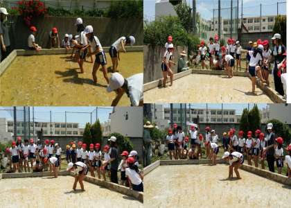 初めは、田んぼの中のヌメヌメした泥の感触を嫌がっていた児童も、