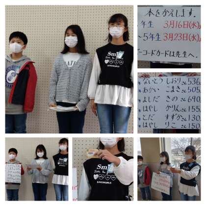 図書委員会の人からは、今年度たくさん本を借りた人の紹介と、借りていた本を返す日のお知らせがありました。