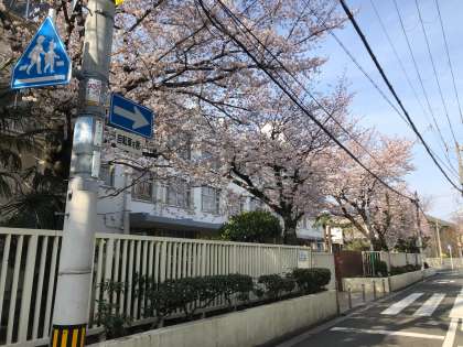正門の桜は、5〜6分咲きです。