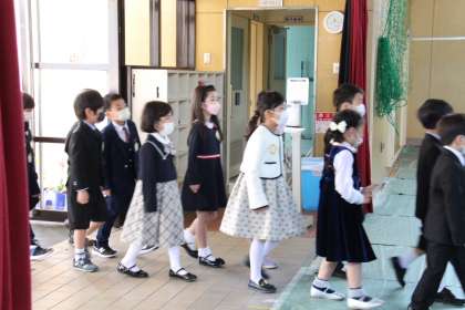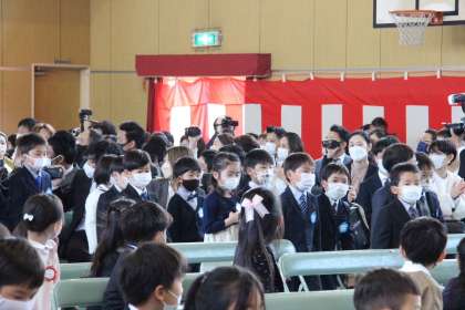 「ここで入学式するん?大きいなあ。」「あ!お母さんがいる!」