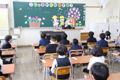 クイズに元気よく答えたり、紙芝居を静かに聞いたり…。