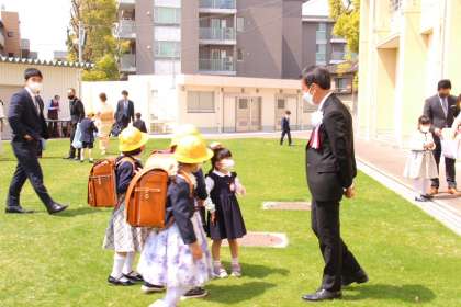 入学式後の芝生広場では、子ども達の笑顔が輝き、笑い声があふれていました!