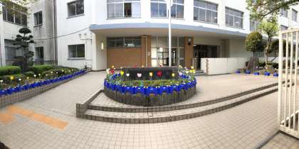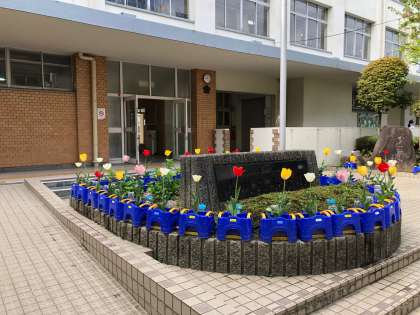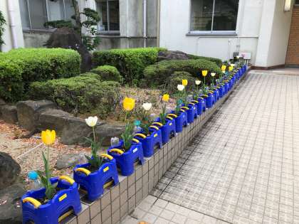 2年生が、昨年度1年生の時に球根を植えて育ててきたチューリップ。
