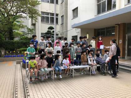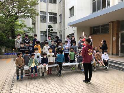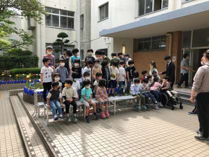 入学式では保護者の方々と一緒の撮影でしたが、今日は、クラスのお友達だけの撮影です。周りが気になっているようですが、カメラマンさんの合図で、パチリ!