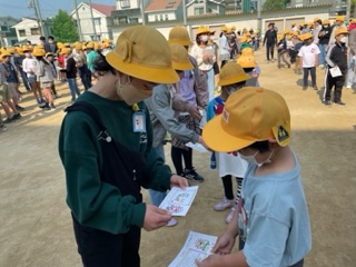 丁寧に書かれた自己紹介カードをもらい、嬉しそうです。