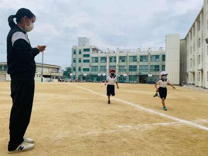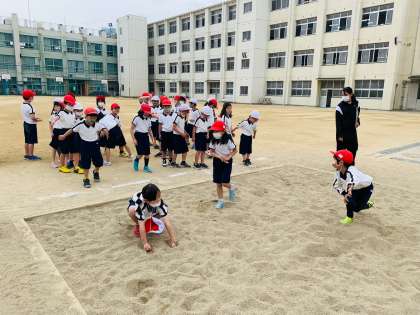 50m走の記録をはかった後、立ち幅跳びの練習をしました!