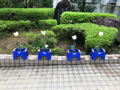 チューリップの球根は、来年も咲いてくれることを期待して、校内の空きスペースに地植えする予定です。