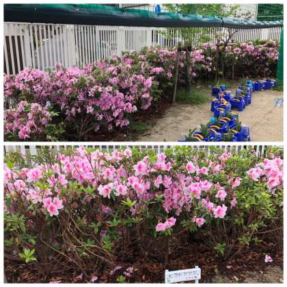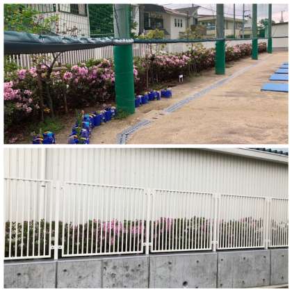 今年の3月に、黒田緑化事業団より寄贈いただいた生垣のヒラドツツジが美しく咲いています。校庭からだけでなく、通学路からもフェンス越しではありますが、お花を楽しめています。近隣の方々にも喜んでいただいています。