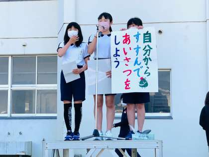 初めに、ユネスコ委員会から今月の目標「自分からすすんであいさつをしよう」について連絡がありました。