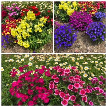 クリサンセマム(ホワイト)、キンギョソウ(イエロー、ピンク、レッド)、ロベリア(ブルー、ピンク、ホワイト、レッド)、パンジー(ブルー、ホワイト、レッド)、ビオラ(三色、ピンク)、ナデシコ(レッド、ピンク)