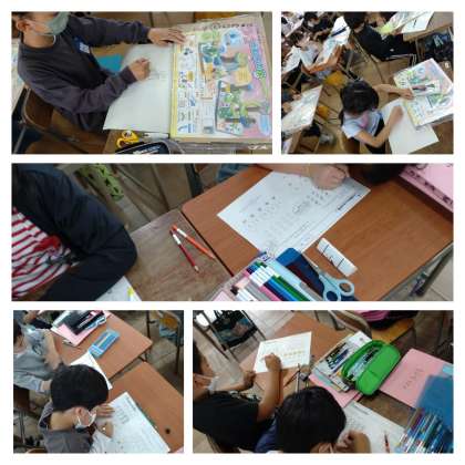 4年生は、図画工作でこれから作る作品の設計図を考えていました。