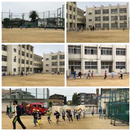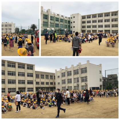 訓練の放送があり、指示に従いすみやかに静かに行動します。