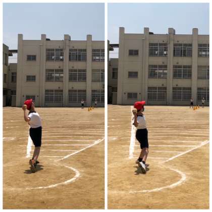 一番下のソフトボール投げの写真は、2人とも40メートルを超える素晴らしい記録です。さすが、美しく力強いフォームです。