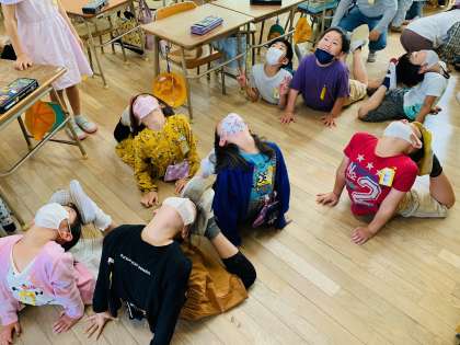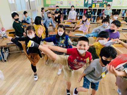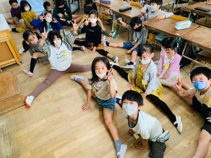 「見て!こんなこともできるで!」と、子ども達は意欲的に様々なポーズをとるので、「それはちょっと、教室ではやめておこう。」と言いながらも、子ども達の体の柔らかさに驚かされます。