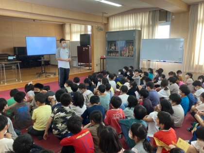 学年で集まり、来週26日(木)に予定している大泉緑地公園への遠足について説明しました。とても楽しみにしていて、晴れてほしいです。しおりには、帽子は赤白帽と書いてますが、黄帽子の誤りです。当日は黄帽子とリュックサックで運動場に集合してください。