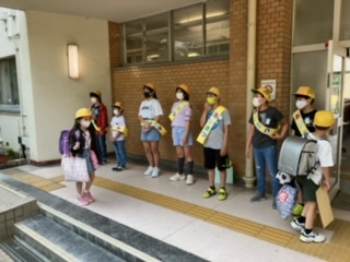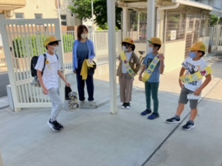 ユネスコ委員会が正門と西門に分かれて、あいさつをしています。
