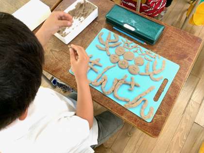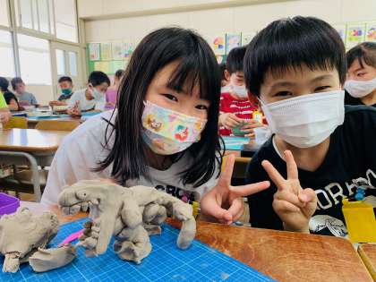 遠足で見た、長居博物館の恐竜の化石を作っている児童が多かったです。