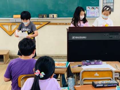 道徳では、ロールプレイングに取り組みながら主人公の気持ちを考えたり、音楽係の楽しい歌と演奏を聞いたり、体育の後にミニトマトの観察をしたりしました。
