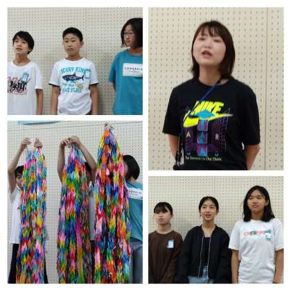 明日から修学旅行に行ってきます。皆さんと折った折り鶴はこんなふうになりました。私たちが広島について学んだこと、戦争や原子爆弾について調べたことをもとに、広島で平和集会をしてきます。広島から帰ってきたら、皆さんに報告をします。