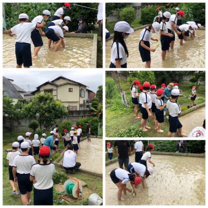 腰を下ろしすぎて、お尻がぬれたり、ぬかるみに足を取られたりしながらも、楽しそうに取り組んでいます。