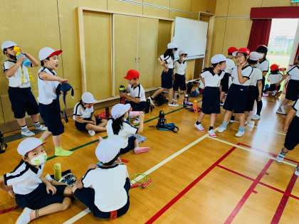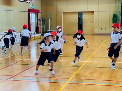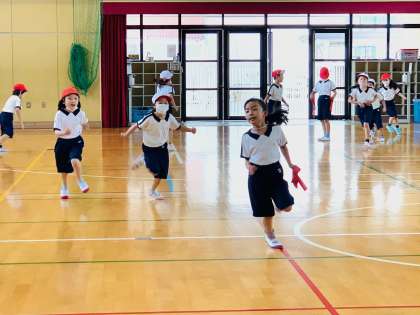 自分のしっぽを守りながら友達のしっぽを取るために、子ども達はまわりをよく見ながら走ります。
