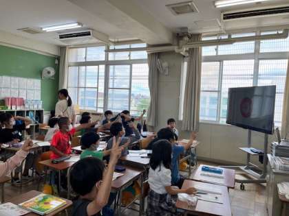外国語活動では、じゃんけんゲームをしました。