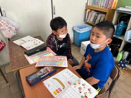 教科書の表に書き、ペアで
