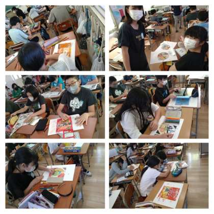 4年生は図画工作で、絵の具を使って素敵な作品を作っていました。