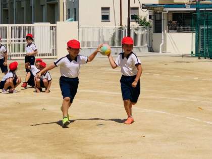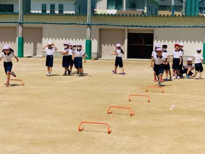 友だちと協力してボールを運んだり、リズムよくハードルを跳び越したり、楽しくリレーの学習に取り組みました。