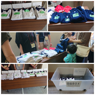 参観の後は、PTA体育厚生委員会による今年度はじめての体操服、給食着のリユースが行われました。