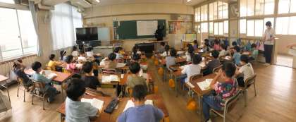 手をたたいてリズムをとりながら、楽しく音読をしています。