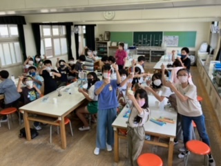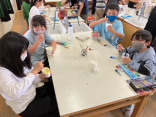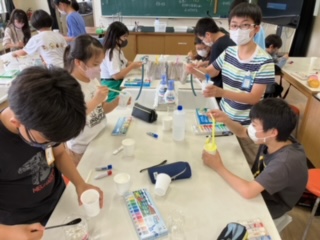 道具の使い方や作り方の順番など、6年生がリードして教えている姿も見られています。