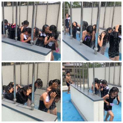 6月17日(金)3時間目、2年生も1年生同様に、小学生になって初めてのプールです。さすが2年生です。